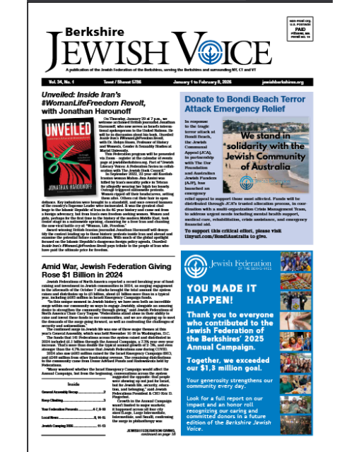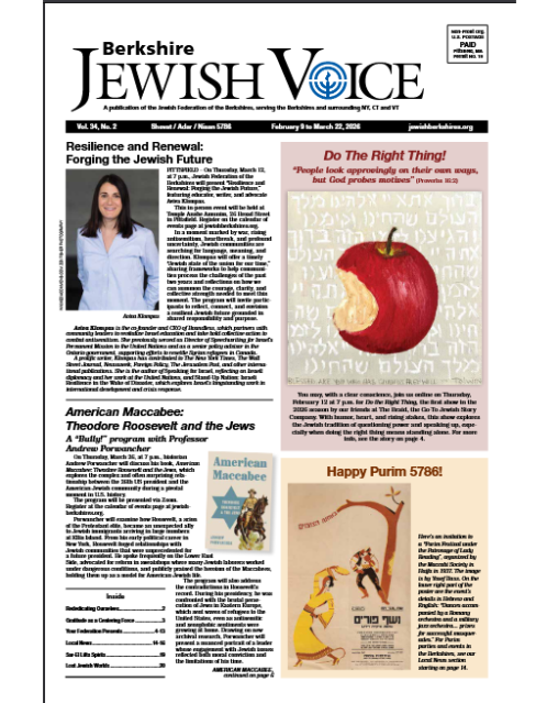 SUBSCRIBE: If you would like to receive the Berkshire Jewish Voice, please consider becoming a volunteer subscriber today.