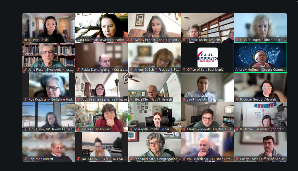 As part of our ongoing advocacy to combat antisemitism and build local support for the recommendations of the Massachusetts Special Commission on Combating Antisemitism, Jewish Federation of the Berkshires recently convened a meeting between our Berkshire state legislators and leaders of nearly all our local Jewish organizations to ensure our representatives could hear directly from the community they serve. We were pleased to be joined by Senator Paul Mark (Berkshire, Hampden, Franklin & Hampshire District) and Representatives Tricia Farley-Bouvier (2nd Berkshire District), Leigh Davis (3rd Berkshire District), and John Barrett III (1st Berkshire District).