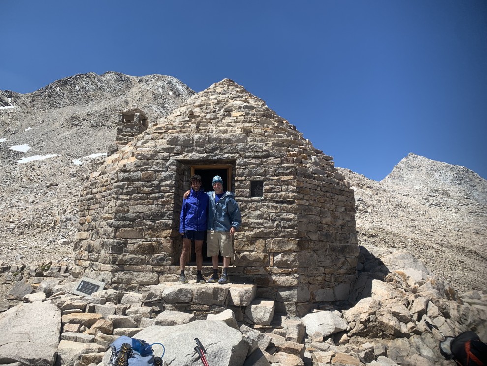 The photo shows Hoberman at the Muir Hut, elevation 11,898 feet