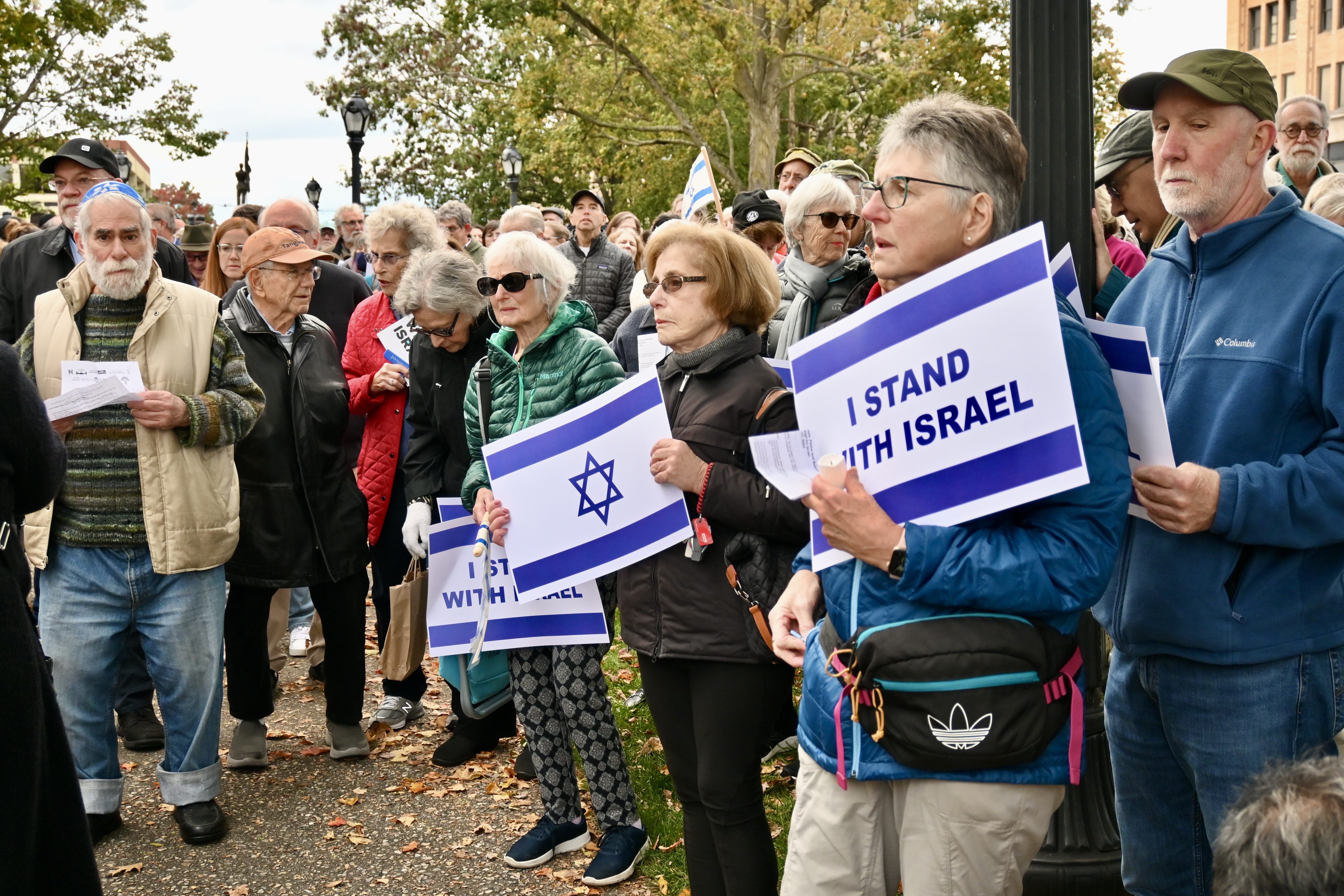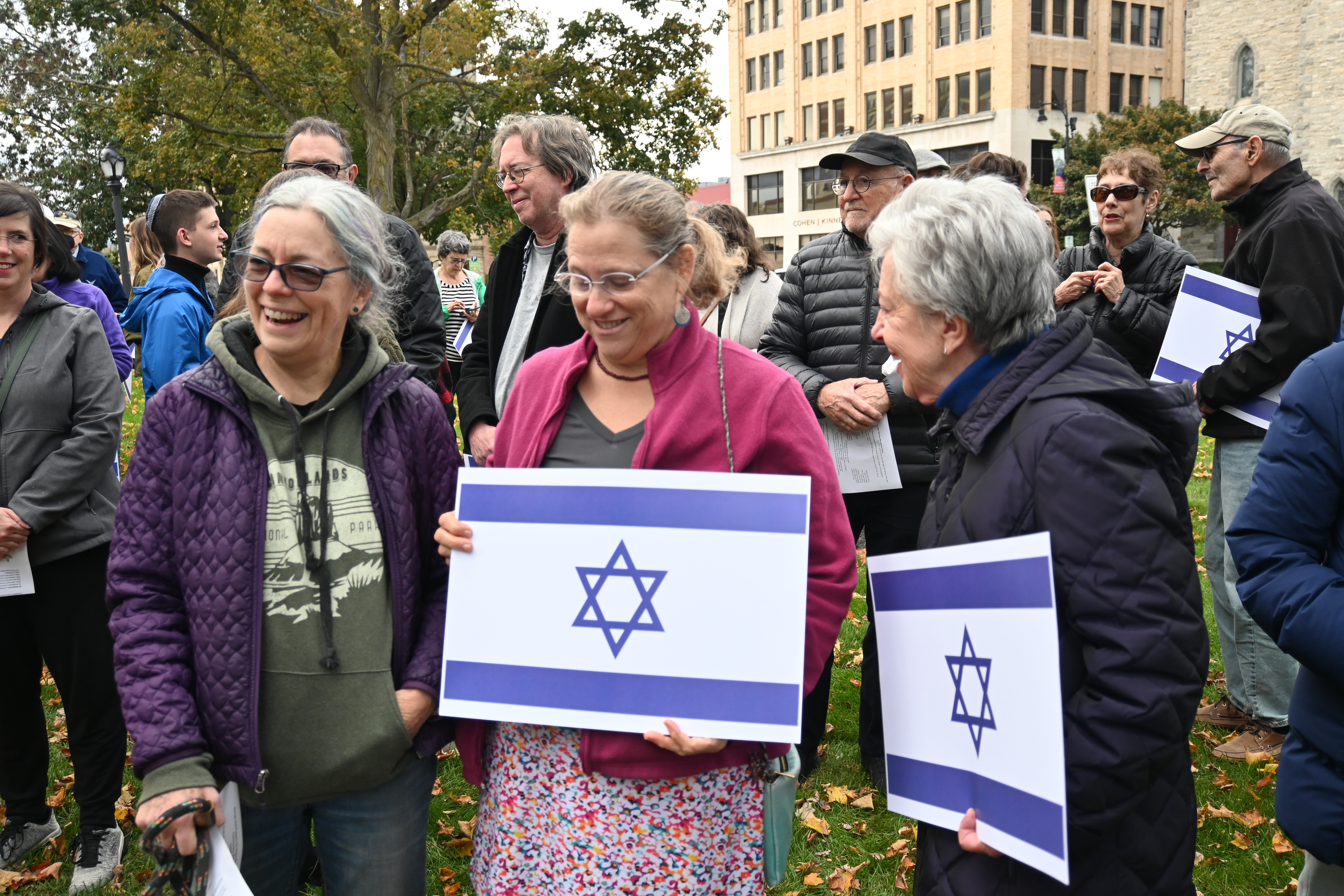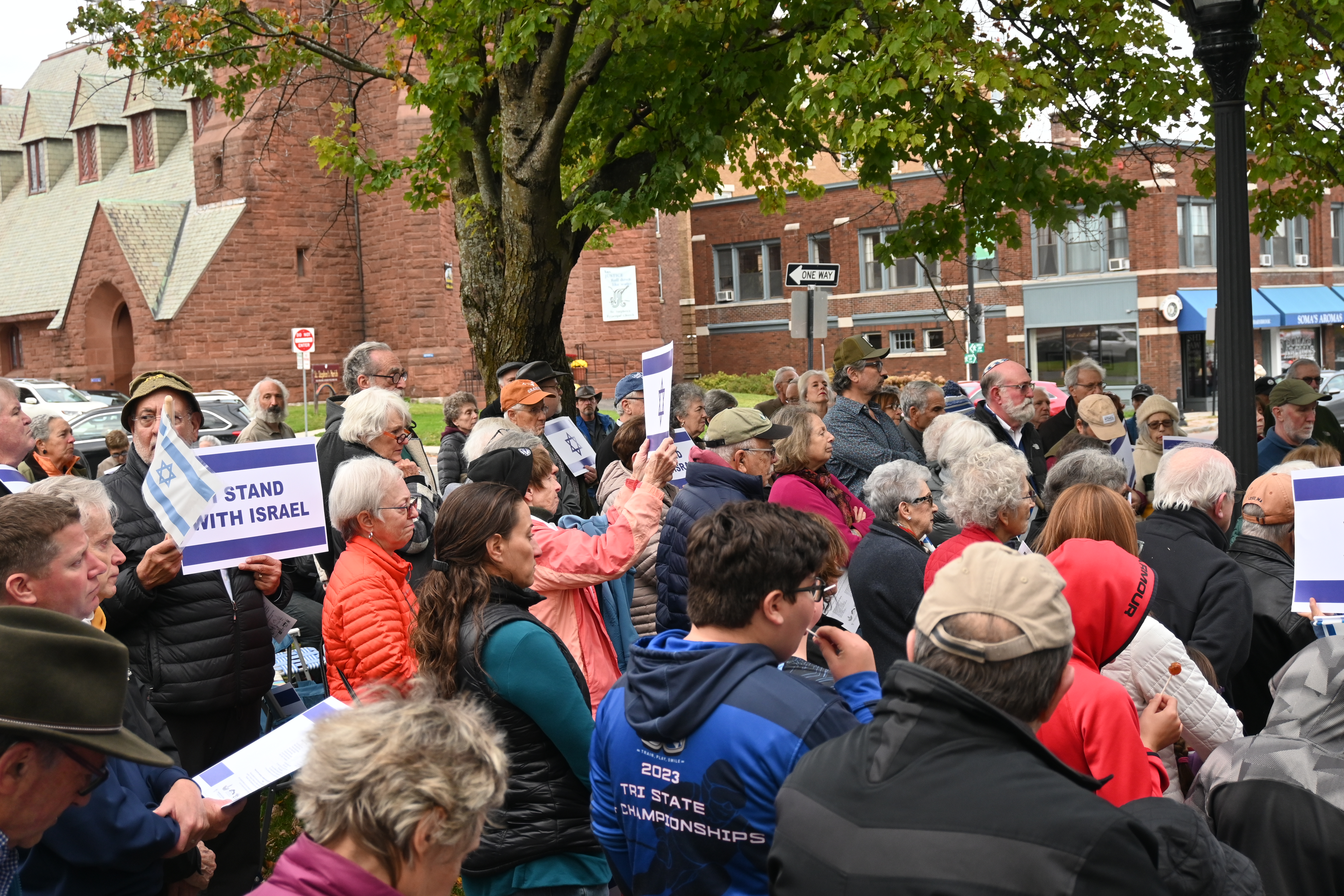 We are grateful to Mayor Tyer and the City of Pittsfield, including the Pittsfield Police Department, for their assistance in making this event happen so quickly and for being here tonight standing in solidarity this with Israel and our Jewish community.