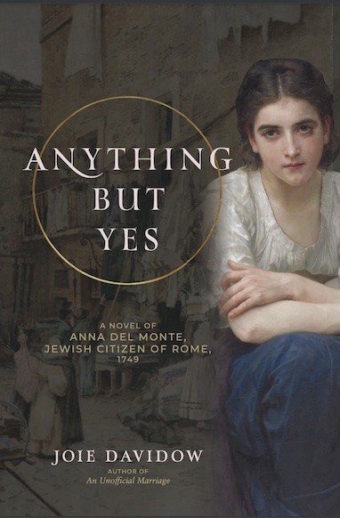 A virtual illustrated talk about the lives of Jews in the Roman ghetto and the Church's relentless effort to convert them to Catholicism, presented by Joie Davidow, author of ANYTHING BUT YES, A Novel of Anna Del Monte, Jewish Citizen of Rome, 1749. In the course of her research, she learned a great deal about the life of Jews under papal rule, their food, customs, music, daily life, and dialect.