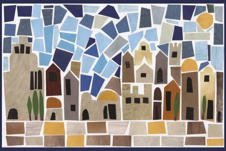 Join mosaic muralist Mia Schon to creatively repurpose magazines to design your own beautiful mosaic of ancient Jerusalem. Explore this creative technique, stone by stone, as we celebrate Jerusalem of Gold. So, grab a glue stick, scissors, magazine pages or other patterned papers (hues of sand, tan, browns, blues, yellows, gold, and greens) you have chosen to work with, and you're ready to go! All levels welcome.