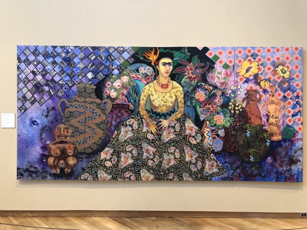 Miriam Schapiro was one of the foremost leaders in the feminist art movement in the US. Since 1970, Schapiro raised women’s consciousness through her painting, printmaking, and teaching. Nicknamed “Mimi Appleseed” after Johnny Appleseed whose dream was for a land where blossoming apple trees were everywhere, she opened paths previously closed and unknown to women artists. Her Jewish identity is explored in tributes to the leftist Mexican painter Frida Kahlo, who claimed Jewish ancestry, her homage to the French Jewish artist Sonia Delauney, a co-founder of the Orphism movement, as well as others.